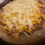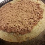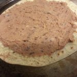 6. Once the wrap is toasted open can of re-fried beans or mashed beans and spread on all four (4) pieces if you pre-cut or over entire wrap, if you are cutting after toppings are on